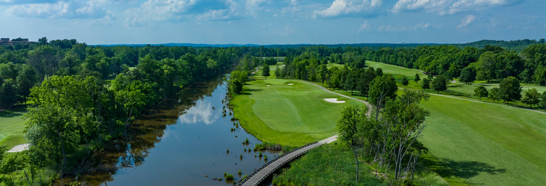 GREG NORMAN COURSE Designed by the legendary “Great White Shark,” this Greg Norman golf course incorporates the undulations of its setting along the Potomac River. The 7,332-yard par-72 golf course winds through a mature hardwood forest and beside rocky outcroppings. Those natural elements combine with historic sites on the 3rd and 4th holes to form the course’s distinct character using Norman’s “Least Disturbance Approach” to design. Capable of hosting championship competition, the Greg Norman Course remains enjoyable for everyday golfers, with tees that fit a multitude of skill levels – including the memorable “island tees” on the par-4, first hole. Players will be challenged on a particularly demanding four-hole stretch dubbed “the hardest mile in golf” by Norman himself. Upon its opening in 2005, Golf Magazine named this course one of the “Top 10 New Courses You Can Play.” You can click on a hole number for more information below. Hole Black Gold Blue White Green Par Men’s Handicap Women’s Handicap 1 413 343 335 299 212 4 7 ~ 2 427 401 385 352 342 4 9 ~ 3 331 298 284 261 216 4 13 ~ 4 605 584 584 536 456 5 1 ~ 5 184 173 160 126 112 3 15 ~ 6 408 394 362 354 322 4 5 ~ 7 442 422 392 384 365 4 11 ~ 8 663 640 610 572 520 5 3 ~ 9 247 222 171 148 133 3 17 ~ OUT 3720 3477 3283 3032 2678 36 10 421 409 379 365 308 4 6 ~ 11 473 437 398 361 272 4 12 ~ 12 554 536 520 479 445 5 10 ~ 13 176 150 138 123 101 3 16 ~ 14 331 314 302 265 235 4 14 ~ 15 429 421 396 380 355 4 4 ~ 16 434 421 398 380 358 4 2 ~ 17 208 184 162 135 117 3 18 ~ 18 586 552 538 529 502 5 8 ~ IN 3612 3424 3231 3017 2693 36 TOTALS 7332 6901 6514 6049 5371 72 Rating Men Women Black 75.5 ~ Gold 73.7 ~ Blue 71.8 ~ White 69.7 ~ Green ~ 71.2 Slope Men Women Black 145 ~ Gold 142 ~ Blue 138 ~ White 132 ~ Green ~ 130 X This short par 4 will help get the round off to a good start. Avoid the left side hazard. A right-center tee shot will leave the best angle to this elevated green. A 200-yard tee shot should leave you a short to mid-iron approach. Par 4 Handicap Men: 7 Women: ~ Tees 413 343 335 299 212 X With hazards down both sides, finding the fairway is the key to any chance of getting to the putting surface on your approach. Left-center of the green is a great shot avoiding the right hazard. Par 4 Handicap Men: 9 Women: ~ Tees 427 401 385 352 342 X A great risk/reward par 4 for the big hitters, but a misplaced tee shot makes bogey or worse a reality. The safe play is 200 yards off the tee with a wedge to the appropriate area of the green. Pin hunters beware, missing the green leaves no easy up-and-down. Par 4 Handicap Men: 13 Women: ~ Tees 331 298 284 261 216 X As the #1 handicap, this hole requires length and accuracy. Avoid the right side with a left-center tee shot. A very straight and long layup shot is needed to give you the most manageable approach shot to a large and well-guarded green. Par 5 Handicap Men: 1 Women: ~ Tees 605 584 584 536 456 X Probably the hardest tee shot on the course! Don’t be short or left. A right-center tee shot is best and par is a great score. Par 3 Handicap Men: 15 Women: ~ Tees 184 173 160 126 112 X A straightforward tee shot, anything in the fairway is good. On the approach shot don’t be short—bunkers and hazard guard the front of the green. Par 4 Handicap Men: 5 Women: ~ Tees 408 394 362 354 322 X A very intimidating tee shot with water guarding the entire right side. Aim towards the far fairway bunker and make a confident swing. From the fairway, a shot to the left center of the green is prudent to avoid the water. Par 4 Handicap Men: 11 Women: ~ Tees 442 422 392 384 365 X Off the tee, it is time to let the Big Dog eat on this monster hole. Likewise, your second shot needs to be as close to the green as possible for the best chance to hit this very small, elevated target. Middle of the green in three is great and par is a good score. Par 5 Handicap Men: 3 Women: ~ Tees 663 640 610 572 520 X This beautiful water hole is the signature par 3. It is a very large multitiered green. If you are not within 20 feet of the hole it may be a tough 2 putt. Par 3 Handicap Men: 17 Women: ~ Tees 247 222 171 148 133 X This is the start of a tough three-hole stretch. Avoid the left side of the fairway with a right-center tee shot to give the best angle into the hole. Once in the fairway, be safe with the approach shot and avoid a tough up-and-down from the bunkers. Par 4 Handicap Men: 6 Women: ~ Tees 421 409 379 365 308 X A narrow-driving hole. Laying back short of the fairway bunkers leaves a long shot into an uphill shallow green. On the approach shot, take a bit more club to avoid the hazard short of the green. Par 4 Handicap Men: 12 Women: ~ Tees 473 437 398 361 272 X A huge tee shot is not required on this par 5, but accuracy is essential. Something in the fairway about 220 yards off the tee, helps set up a straight-forward lay-up with a long iron to clear the hazard and leave a short iron or wedge into the two-tiered green. Be on the correct tier for a chance at birdie. Par 5 Handicap Men: 10 Women: ~ Tees 554 536 520 479 445 X A straightforward par 3 with a multi-tiered green and slightly uphill. Finding the correct tier of the green typically produces a good score. Par 3 Handicap Men: 16 Women: ~ Tees 176 150 138 123 101 X Another driveable par 4 for the big hitters. The approach shot here is difficult—with a small and undulating green. Par 4 Handicap Men: 14 Women: ~ Tees 331 314 302 265 235 X Despite a big fairway, a tough approach shot will test even the longest hitters. A slightly uphill, well-guarded green favors a longer shot. Par 4 Handicap Men: 4 Women: ~ Tees 429 421 396 380 355 X This is an extremely difficult bottleneck par 4. Hazard is both right and left off of the tee and the approach shot has to be very precise to hit the green. Par will earn you boasting rights. Par 4 Handicap Men: 2 Women: ~ Tees 434 421 398 380 358 X A medium-length par 3 with hazard left. The